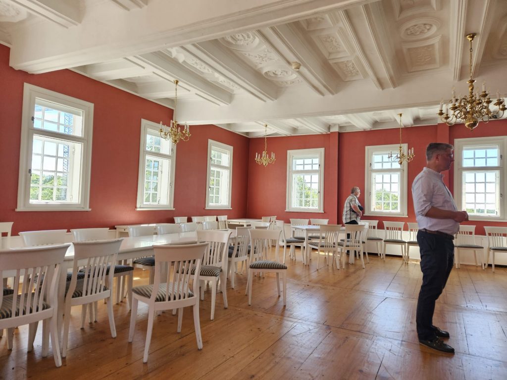 Er ist nach seinem Erbauer Heinrich Jobst benannt. Er besitzt eine vielfältig gegliederte, schwere Stuckdecke, in der neben den verschiedenen Darstellungen von Vögeln, Blumen usw., die Wappen und Portraits von Heinrich Jobst und Anna Susanna, geb. von Barby zu sehen sind. Ganz offensichtlich ist die Innenarchitektur ds Saales stark von niederländisch beeinflußt, was sich noch heute an der Form der Fenster und besonders an der Art und Gestaltung des Stuckes ablesen läßt. Man darf davon ausgehen, dass der Saal zu seiner Entstehungszeit der Pracht der Decke entsprechend vertäfelt war, was an den beiden original erhaltenen Fensterleibungen noch zu erkennen ist. Auch die sonstige Ausstattung mit Gemälden und Möbeln dürfte der Größe und der barocken Fülle des Raumes entsprochen haben. An der Stirnwand waren ursprünglich vermutlich die beiden lebensgroßen und ganzfigurigen Portraits der Erbauer angebracht, welche bis 1945 an anderer Stelle im Schloss erhalten geblieben waren. Georg Ernst Levin hatte diesen Saal um 1805 leider aufgegeben indem er zwei Wände einzog, um Platz für die gesammelten Gemälde und Gästezimmer für seine zahlreichen Gäste zu gewinnen. Im Zuge der Restaurierung von 1991 – 1994 wurde dieser Saal weitgehend in seinem ursprünglichen Zustand wiederhergerichtet. Dabei wurde hinter dem Mauerwerk der große Barockkamin gefunden und an alter Stelle wiederaufgebaut. Der Burgsaal wird nun für Konzerte, Feiern und andere größere Veranstaltungen genutzt.