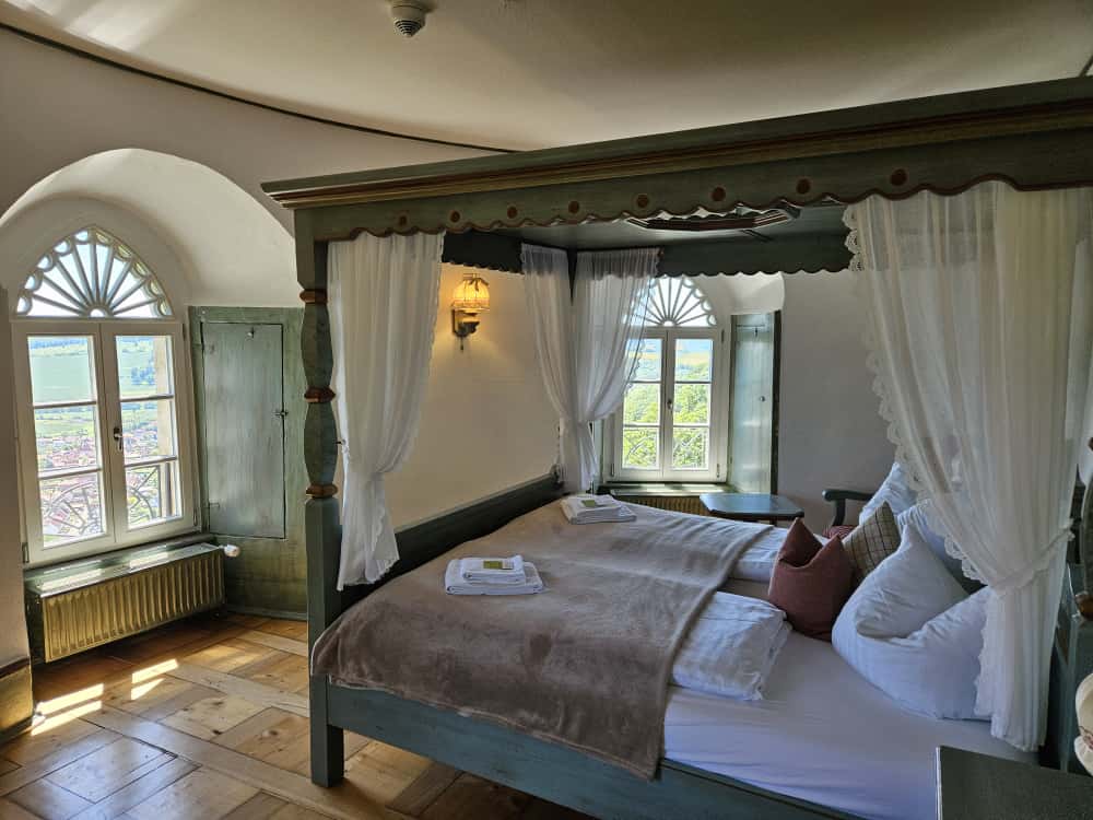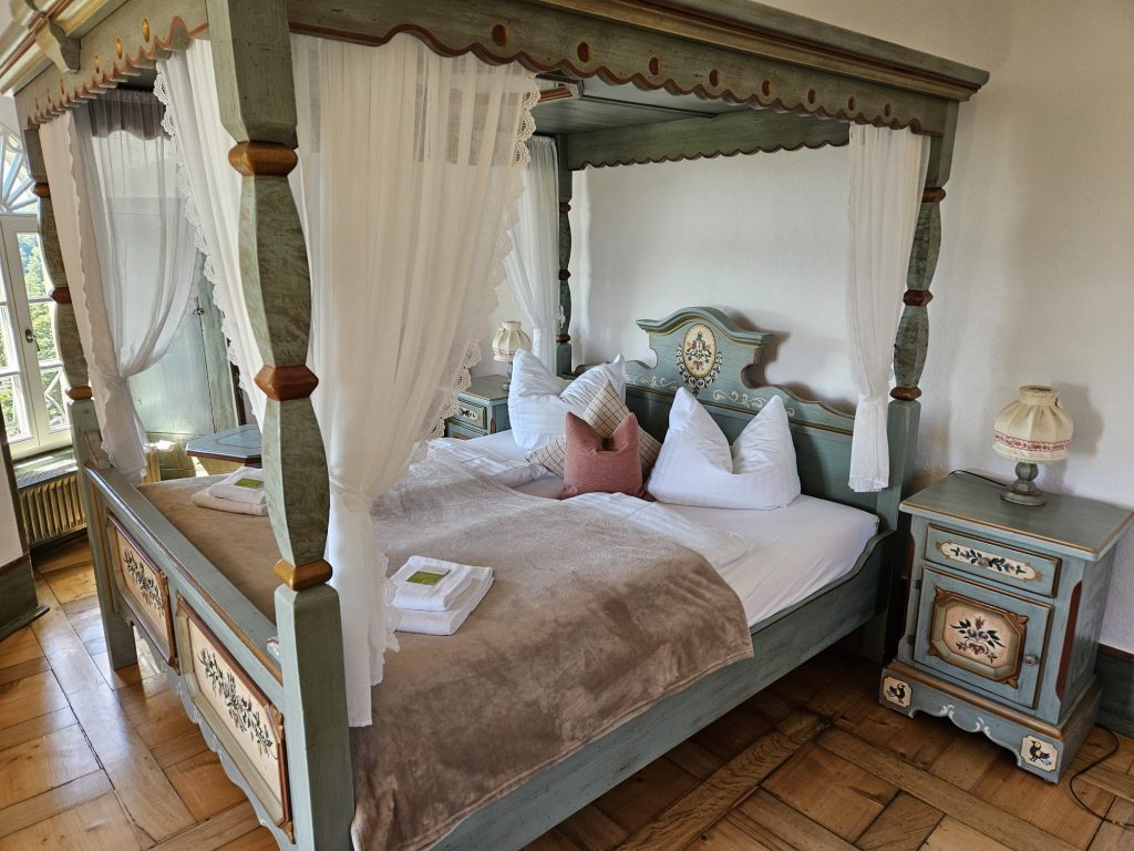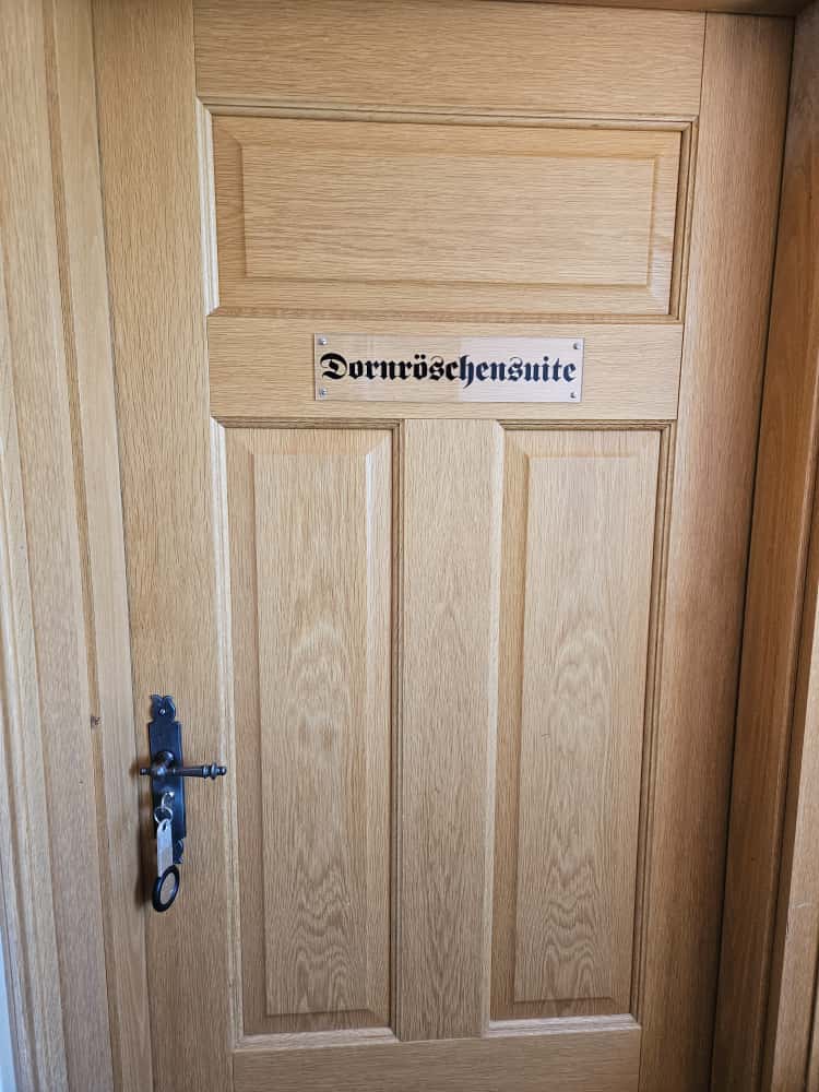 Wenn wir schon mal hier sind, werfen wir noch einen Blick in die Dornröschensuite. Sie hat zwar keinen besonderen geschichtlichen Hintergrund, dafür ist sie besonders bei Hochzeitspaaren und frisch Verliebten um so beliebter.