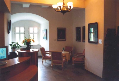 Die Empfangshalle befindet sich im Südflügel und ist durch das Hauptportal zu erreichen. An diesem sind die Erbauer Heinrich Jobst und seine Frau Anna Susanna als Wassermann und Nixe zu erkennen.