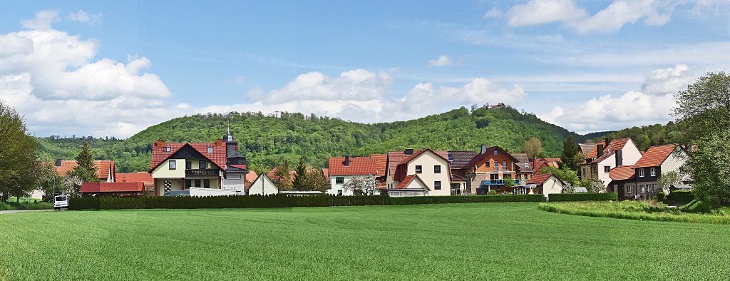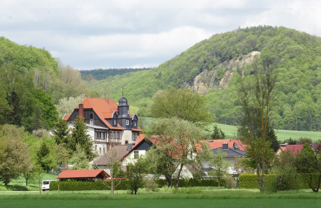 Martinfeld, im Tal der Rosoppe westlich des Gleichensteins, wird 1071 in einer Urkunde Heinrich IV. als Mertinveld erstmalig urkundlich erwähnt. Als Besitz gelangt es vom Kloster Hersfeld an die Landgrafen von Hessen, die es 1486 als Lehen an die Brüder Gerwigshausen geben. 1518 gelangten die Herren von Bodungen in den Besitz Martinfelds und erweiterten den feudalen Hof zum Renaissance-Herrensitz. Der Dreißigjährige Krieg zog wie das Dorf auch das Schloss in Mitleidenschaft. Vom allgemeinen Aufschwung in Eichsfeld im Zuge der Entwicklung der Wollweberei profitierte auch Martinfeld, wovon die 1723 erbaute St.-Ursula-Kirche und einige schöne Fachwerkhäuser zeugen. Das Schloss wurde 1945 enteignet und dient seit dieser Zeit als Jugendherberge.